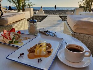 Ресторан Delmar расположен на берегу моря, рядом с пляжем «Приморский». Он знаменит эффектными сетами на завтрак, средиземноморскими блюдами и рыбой дня из свежего улова. В меню — яйцо с красной икрой и бокал игристого в подарок, глазунья с морепродуктами, брускетта с тунцом, вафли и, конечно, кофе. Для детей предлагают первые и вторые блюда, молочные коктейли, мороженое и десерты.
