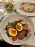 Очень часто посещали это заведение, но до вчерашнего дня. Пришли вечером, заказали пасту и телячьи щёчки — блюда принесли холодными. На наш вопрос официанту, почему еда ледяная, она унесла тарелки, а затем вернулась со словами, что «с ними всё в порядке», но их уберут из счёта. На просьбу заказать что-то другое ответили, что нельзя, потому что кухня уже закрыта. Извините, но научите, пожалуйста, персонал (или пусть ваш шеф-повар почитает), с какой температурой должны подаваться горячие блюда. Очень разочарованы.