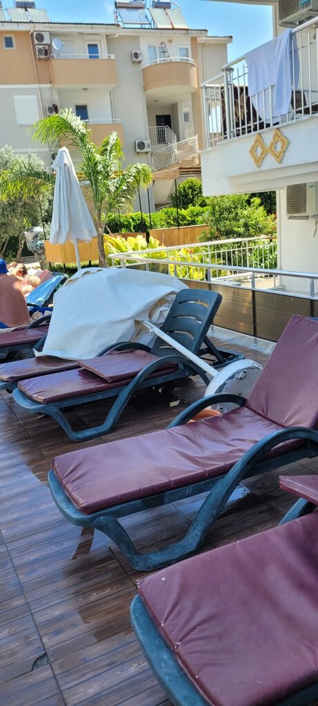 3 Akdora Resort & Spa (Ex. Palmiye Garden Hotel) 4* Сиде Svetlana, май 2024 Всем добрый день. Вчера прилетела из этого ужасного отеля. Перед поездкой читала отзывы об отеле, думала, как всегда пишут отрицательные отзывы на эмоциях, как обычно или , кто до этого отдыхал в более комфортных условиях и попали в бюджетный отель. Про грязь в номерах это отдельная тема, во всех отзывах пишется, что убирают номера отвратительно. Я бы сказала, что их практически совсем не убирают, при заселении вошли в номер сразу в нос ударил страшный тошнотворный запах (номер 2311) из сан комнаты. В номере с виду все так чистенько, но получилось так, что я уронила карточку, нагнулась, посмотрела под кровать, с там мама дорогая, пыль сантиметров 10 высотой, там однозначно месяца два никто не МЫЛ. Но и с этим мириться можно, не такие уж большие деньги были оплачены. Пришли к бассейну лежаки более менее, зонты отдыхающие открывают сами, боясь оставить пальцы, в креплениях. Но это тоже полбеды. Беда пришла совсем неожиданно. День был прекрасный я лежала загорала у бассейна. Лежала мечтала и вдруг резкий удар по голове, крики людей, ужасная боль и потекло что то тёплое по телу. Хорошо рядом ребята быстро подбежали ко мне, приложили полотенце к голове, которое стало быстро пропитываться кровью, повели на рецепшн. Старший менеджер конечно испугались моего вида, посадила в свою машину, повезли в госпиталь Анатолий. Там мне наложили швы на голове. Да отель заплатили за обследование, швы наложили за счёт страховки. Предложили остаться до утра во избежании ухудшения моего состояния. На мой вопрос кто оплатит моё там нахождение в госпитале, ответили я и стоит это не мало 100 долларов. Через час просто лежавши в комнате на кушетке, я приняла решение ехать в отель(отельного менеджера уже рядом не было, посоветоваться не с кем) Я лежала и думала за что мне всё это? Лежу в чужой стране, я почувствовала свою максимальную незащищенность. В отель меня доставили по страховки транспортом госпиталя. Когда выписывали дали рецепты на лекарства, которые срочно необходимо принимать. В отеле мне слава богу помогли люди и моя приятельница, извините за сленг она просто наехали на персонал отеля, чтобы они за свой счет купили мне лекарства. Потом оказалось у телефона моего разбит экран, у дорогих очков сломана душка одна.... Ну ладно думала вечер, завтра, когда будет руководство мне что-то решат в качестве возмещения или хотя бы ремонта моих вещей. Но.. Это осталось только в мечтах. До отлёта я три дня лежала в номере, так как страшно кружилась голова, потерянная и морально убитая. Да, так как в отеле интернет был платный 3 евро в сутки, мне подключили бесплатно на эти дни . Но самое страшное, оказывается зонт который упал мне на голову, упал и на второй день. Никто не спешил ничего исправлять , а ведь был бы на моём месте ребёнок его бы убило этим тяжеленным основанием трубой от зонта. Что я хочу сказать для всех , ребята, чтобы ваш отдых не омрачился и был не испорчен, прежде чем ложиться у бассейна, под зонтами на лежаки, проверьте закреплены ли они??? Да и посмотрите по сторонам ничего не угрожает вашей жизни? Единственное хотелось бы сказать спасибо поварам, питание хоть и было однотипным, но на вкус нормальное всё было. Голодными точно не останетесь. Большинство персонала хорошие, весёлые ребята., кроме клиринга....Большое спасибо бармену 
