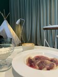Здесь за тысячу рублей — воронка и семь вареников. На самом деле с трудом нахожу оправдание такой цене. Да, скандинавский интерьер, великолепно лаконичное пространство, удобная рассадка. И кофе! Мне предложили очень приятную воронку на панамском зерне, мега деликатную! Вареники из тончайшего пергаментного теста с вишневой кислинкой и добротной порцией сметаны в креманке:) И все же, цены даже для центра Москвы кусачие.