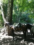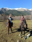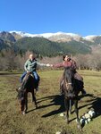 Были на прогулке слияния рек; не впечатлило.. на коне было ехать не комфортно, он был сам по себе, пытался лишь успеть за ведущим, не поддавался управлению.. останавливаешь, тянешь поводья на себя, он все равно бежит рысью вперед; уводишь его в сторону, он все равно уперто идет за вожаком. Никаких особых объяснений от «инструктора» не было, шел просто впереди, курил сигареты, оглядывался лишь когда крайняя лошадь отставала. По времени маршрут вышел не заявленные 2 часа, а меньше полтора. По живописности маршрут - это пройти по Архызу, где строительные работы, перейти дорогу, дойти до ворот и подойти к речке, все, и обратно. Пожалела, что не поехала в другой конный клуб.