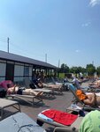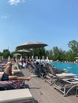Приятное место. Два бассейна, взрослый ( не глубокий) , и совсем детский. Вода теплая. Пол - плитка. Понравились лежаки. Многие проходили со своей едой и напитками. На территории присутствует бар, можно перекусить хот догами, картошкой, нагетсами. Зонтиков очень мало.