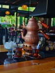 Из плюсов - хороший, черный, похожий на турецкий чай. Не понравилось - время подачи еды очень долгое. При этом блюда были из стандартного меню, а в кафе было относительно не много людей. И даже после 40 минут ожидания куриные крылышки были внутри сырыми. Работа официантов, просто отвратительная. За более 2 часовой обед, они ни разу не подошли без просьбы с нашей стороны что-то убрать или принести. Перед подачей десертов, собрали грязные тарелки, а чистые не принесли. Подали десерты на общих больших тарелках, ну и ешьте из как хотите. Кто-то из нашего стола тихо попросил тарелку, ну так только ему и принесли. Я не понимаю, ладно эти официанты не знают своей работы, нр они что с луны упали? Они дома никогда не принимали гостей? Они элементарного не понимают? Ну, что можно сказать.... Уважаемый собственник этого заведения, у вас воруют прибыль ваши непрофессиональные повора и официанты! А виноваты в этом именно Вы, раз не обучаете и не контролируете процесс. Никому не советую туда ходить!