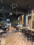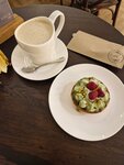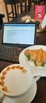 Очень милое просторное место, радует график работы, есть маленькие столики для дружеских встреч и большие столы для работы, вкуснейшая брускета с лососем и отменный миндальный круассан, я бы добавила что-то ещё в меня завтраков типа оладушек из кабачка со страчаталлой или омлета с овощами, хотелось бы также декаф, в в остальном рекомендую