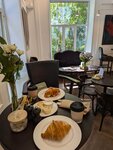 Очень красивый интерьер, доброжелательный персонал, атмосферно. Но над качеством блюд надо еще немного поработать. Кофе вкусный, хотя крепковат. А вот круассан был сухой, эклер вообще не вкусный, как будто б не сильно свежий.. яйцо пашот не стоит своих денег, у конкурентов за эту цену еще и лосось добавляют. Очень надеюсь, что прислушаются у мнению посетителей, не хотелось бы потерять такое красивое и атмосферное место