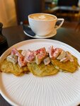 Очень уютное кафе, прекрасная атмосфера, очень приятные официанты. Кафе, по-видимому, не так давно открылось, поэтому меню пока не очень большое, но все, что мы заказывали, было очень вкусно. Особенно рекомендую драники. Выпечка и кофе очень вкусные.
