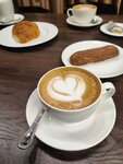 Хорошее расположение, приятная и уютная обстановка (были перед Новым годом), превосходные круассаны (нежные, мягкие, пышные). Заходили исключительно на кофе. Брали капучино и детский "бейбичино"; в капучино не хватило молочной нотки, чувствовалась горчинка, как будто пережгли немного; для ребенка, к сожалению, просто взбитое молоко, без рисунков и украшений. Может все зависит от бариста находящего на смене, не знаю. Негатива от посещения в общем и целом нет, заведение развивается, поэтому как нибудь ещё загляну. Такие заведения имеют место быть, глаз радуется! Персоналу желаю больше улыбаться и иметь позитивный настрой!