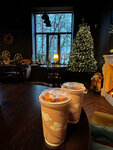 Пришли первый раз в эту кофейню, очень понравился осенний интерьер. Сделав заказ, Решили сделать фото с декором и напитками. людей не было. И заметили, что сотрудники начали между собой пересмеиваться и показывать на нас пальцем (не первый раз фотографируемся в ресторанах, оставляем крутые отзывы с хорошими фото, но первый раз столкнулись с таким отношением). Хорошее впечатление было испорчено невоспитанными сотрудниками кофейни. Отсюда и выпадает вопрос , зачем весь этот тематический декор если при фотографии с ним на тебя косо смотрят? *p.s к напиткам вопросов нету и в принципе к кофейне/ресторану