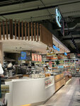 Очень хороший и уютный магазин и кафе, но отвратительнейшая организация работы персонала в кулинарии. Бизнесс процесс по заказу блюда в кафе просто крайне неудобен и не продуман. Руководители, - придумайте что нибудь! При заказе кофе с просьбой сделать по горячее приносят не понятно когда, уже остывший. Долгое ожидание при свободной куче официантов, которые стоят без дела у стола с заказами, но никто не шевелится. После просьбы разогреть, приносят опять полуостывшим, т.к. официант не смог подойти, т.к. был занят другим заказом. В итоге пришлось принести самому. Бегаешь от отдела к отделу за бумажками-наклейками, потом блюда не дождаться, при этом, повторюсь, несколько официантов стоят без дела у стола с заказами. Причем стоимость блюд далеко не дешевая!!! В итоге: что-бы поесть, надо побегать от отдела к отделу, контролировать работу персонала. Создалось ощущение, что попал на мастер-класс для первоклассников на какой-нибудь новогодний праздник, по обучению о работе официантов.