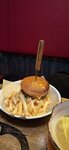 Прекраснейший наваристый куриный бульон!!! Для путника с больным желудком как у меня, кому ничо низя, идеальная еда! 💜💚💛 Мои комплименты повару! И бармену за быстрое и ненавязчивое обслуживание. Интерьер заведения -- отдельный вид искусства! Рекомендую👍