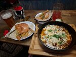 Зашли после летнего сада попробовать пиво (бланш, ипа и сидр). Всё понравилось. Еда тоже была вкусная, брали бургер, шкворчащую сковороду и креветки, последние были прям вау)