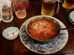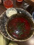 Борщ по грузински - насыщенный бульон, хорошая порция мяса, вкусный суп, есть остринка местами 👍 мясо нежное. Порадовал, рекомендую всем) Чашушули с говядиной в соусе под тестом порадовал своим нежнейшим мясом, вкусным соусом под специями , и в меру остротой, горячее блюдо из печи сытно и будет отлично для ужина. Брали блюдо от шефа - мяса оказалось очень мало, но оно было мягкое и приятное в соусе ( правда официант предупредила, что блюда будет немного, но не уточнила, что именно мяса 😔 ...) очень мало - четыре кусочка и крупная порция печеного картофеля . Напитки - разливное пиво хорошее, лимонад домашний и насыщенный, запомнился свежестью.