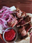 По советам местных жителей зашли попробовать мясо. Сказали бронировать столик, нам повезло попасть без предварительной брони. Посоветовали жареные хинкали, я их ранее не пробовала. Шашлык из баранины понравился, хотя для меня был солоноват. Хинкали очень понравились. Салат из хрустящих баклажанов, понравился. Соус в палате не очень. Официанты знают меню, следят за гостями. В меню нет граммовки блюд. Обращаю на это внимание при заказе блюд. Вина я бы сказала, дороговато, особенно для домашних вин. Советую посетить.
