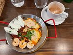 Всё, что заказывали, очень понравилось, особенно хачапури от шефа и меню завтрака (заказывали грузинский завтрак и шакшуку с креветками). Порции большие, сытные и очень вкусные. Будем возвращаться! ❤️ Спасибо официанту Денни