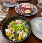 Сегодня побыли в этом ресторане и стоит отметить в сравнении с тем,что мы уже попробовали в Кисловодске. Шашлык из шеи свинины на высоте,корейка ягненка вообще отвал башки. Безумно,безумно вкусные хинкали из баранины с тархуном. Прям рекомендую на все 💯 процентов. Ваши гастрономические сосочки будут в восторге от гренок грузинских. Я как будто в Париже вновь побыла,когда их кушала. На сколько они вкусные и хрустящие,просто бесподобно. Хачапури со шпинатом тоже хорошо приготовили,а вот сулугуни жареный не очень и я это отметила,масло чувствовалось уже староватое. Гебкалия кто любит,тот тоже оценит её приготовление в этом ресторане. Еще мы взяли мохито и тоже топовый вкус. Обслуживание хорошее у нас был официант Артем.