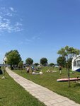 Были 13 июля в воскресенье. Из плюсов: +Большая база отдыха в прекрасном месте. +Сотня беседок с мангалами. +Большая парковка. +Есть туалеты (платный и безпроцентный). +На пляже есть переодевалки. +Есть уличные рукомойники. +Зоопарк (почти контактный) +Развлекаловки: тир, верёвочный парк и т.д. Теперь минусы: - Воскресенье, лето, наплыв отдыхающих... и один администратор оформляющий беседки + гостиничные номера. Уже к 11 утра он в запаре. Готовьтесь потратить полчаса на оформление даже забронированной беседки. - Беседки расположены довольно близко друг к другу. И не всегда попадаются адекватные соседи. Нам "повезло" одновременно слушать шансон из выносной колонки с одной стороны, цыганские пляски с другой и восточный тыгыдым орущий из машины на парковке, перекрывающий все остальные оралки... - Пляж не для детей. Сход в воду с бетонного бруствера по лесенке. Проходящие мимо теплоходы и катера поднимают такую волну, что и взрослым нужно держаться. Хорошо, что довольно мелко. На сотню метров вода по пояс... - Зоопарк... Прикольно, что можно купить капусту с морковкой и кормить животных с рук. Детям нравится. Козы с верблюдом в огромном открытом вольере. Но есть ещё маленькие, тёмные каменные мешки 2х2 метра где живут пара волков... медведь... беркут... фазаны... Удручающее зрелище. В целом от базы остались хорошие впечатления, НО есть нюансы которые сильно портят общую картинку.