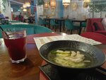 Из плюсов: уютный летник во дворе, в целом расположение интересное… вроде вдоль дороги, но уютно… приветливый персонал… Из минусов: были 2 раза, никакого вау не произошло… Суп неплохой (но принесли холодным и из-за этого сверху плавала прослойка) Паста вкусная Салат греческий на фото… Роллы просто 0 из 5… не знаю откуда такие хвалебные отзывы…