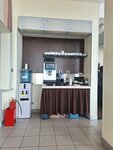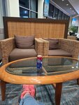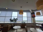Рекомендую🌟🌟🌟🌟. Можно хорошо перекусить. Легкие каши, сосиски, блинчики, блинчики с мясом, десерты🙃. Я наелся хорошо. Большой выбор напитков, кофе соки, газировка. Есть томатный сок. Отличное место чтобы почилить))). Сходил в душ🌟 У окон кондиционер дует более чем достаточно🩶. Находится в секторе С. Отличный вид на инфраструктуру аэропорта.🫶 Для детей есть игровая площадка.