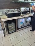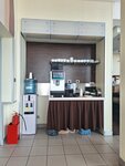 Я бы поставил, 3.5, но нет такой звездочки. Двоякое впечатление. Можно перекусить, но по минимуму. Десертов много, есть фрукты. Кофе, чай надо наливать в бумажные стаканчики. Столовые приборы пластиковые. Бутылированная вода есть газированная и без. Баночное пиво и сидр. Вино и крепкие напитки отсутствут даже за деньги. Есть игровая комната. Кресла большие, но неудобные.