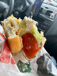 Заказ: вопер,картошка,соус сырный и шримпрол. Вопер словно из морозилки- булка вся сыпется,вкус отвратительный- в середине кусок кочерышки от капусты) В данном заведении первый и последний раз- не рекомендую!
