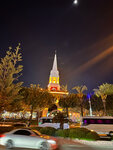 Башня и правда там есть. Она и правда новодел. Мы один раз попили кофе в её кафе внизу на улице, а во второй раз всё таки поднялись на верх. Для этого было две причины. О второй чуть позже. На верх ведёт не широкая лестница, которая к тому же постепенно сужается в конце. Кухню не пробовали, но кофе "американо" такой, что у некоторых "эспрессо" слабее. Персонал работает без задержек, но и не стоит над душой. После еды не надо просить счёт, просто оплачиваете в кассе у выхода. Карта Юнион Пэй от Россельхозбанка сработала. Но вот, если разобраться, вид вечером с площадки башни никакой. В добавленных фото это можно увидеть. Теперь про вторую причину. Просто понадобился туалет, на площади перед башней он был, но платный. А в кафе их аж два и бесплатные. Ещё один снимок показывает не туалет, а то что часы не работают. В общем хочу сказать, что башня не столько хороша кафешкой, сколько для туристов является отправной точкой. Вся логистика завязана на ней.
