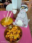 Ввиду популярности места позвонила, чтобы забронировать столик на вечер, пообщалась с очень отзывчивой девушкой. Она сообщила о нюансах бронирования и рассказала о текущей обстановке с посадочными местами. Было решено ехать. Нам повезло, по приезде на место был обнаружен свободный столик. Меню оказалось очень разнообразным. Выбирали блюда минут 15, потому что глаза разбежались. Еда понравилась. У токпокки карбонара невероятный аромат, а корндог с соусами юдзу и мятным просто сразил мои вкусовые рецепторы :) Несмотря на почти полную посадку, девушки, работающие в зале, были очень внимательны ко всем посетителям. В малом зале довольно громкая музыка, разговор заглушает, но создает ощущение шумной корейской улицы. А в большом зале вкусно пахнет с кухни.