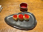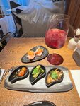 Однажды летом я шла мимо и зашла сьесть ролл и выпить бокал вина. С тех пор, когда мне хочется роллов - иду сюда. Все позиции в меню еще не перепробовала) но все, что я ела, мне всегда нравилось. Претензий к еде не возникало. Попробовала сет РРФ, могу порекомендовать, интересная интерпретация русской кухни по-азиатски. Уютный небольшой ресторан. Приятная атмосфера, хороший сервис., За ожидание предложили сет закусок (черри, битые огурцы и кимчи).
