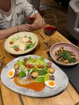 Невероятно вкусное и красивое место! Салат с хрустящими баклажанами запал в моё сердце, много где подобное пробовала, но именно здесь мой фаворит! Ресторан подходит для уютного вечера с друзьями, а также для сногсшибательных фотографий в инстаграм! Отдельно хочу выделить потрясающе вежливый персонал! Официантка Александра безумно доброжелательная девушка, которая скрасила наш вечер! Обязательно будем приходить еще и еще!!🙏🏻🥰