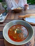 Прекрасное место, отличное расположение, очень зелёная терасса интересная посуда. Отдельная благодарность персоналу за обслуживание, вежливость, очень внимательные и учтивые. О блюдах можно сказать очень многое, одним словом - восторг. Большие и сытные блюда, очень вкусные, котлеты из щуки очень ныжные, хачапури по аджарски бесподобна. Авторские чаи очень приятные, яркие и насыщенные. Отличное место, все очень понравилось. Большое спасибо!