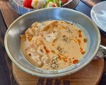 Неплохой ресторан с весьма внушительным заполнением при не самом удачном расположении. Большая летняя веранда с пледами и обогревателями. Грузинская кухня. Цены вполне приемлемые. Обслуживание достойное. Вкусное хачапури по-аджарски. Горячее с говядиной понравилось, но если бы картошка была не "чипсами", а по-деревенски, наверное, было бы лучше. Ну, а из минусов - очень высокая цена за хинкали, в которых почти нет мяса... При этом нет хинкали только с бараниной - туда ещё говядину засунули((