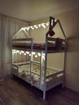Заказали двухъярусную кровать для детей. Обещали что придёт через месяц, в итоге пришла через два. Когда стали собирать, оказалось что положили не те детали для бортика на верхнем ярусе. Предложили подождать ещё месяц когда пришлют замену. Мы отказались ещё ждать, в итоге нам выдали детали. По внешнему виду притензий нет, выглядит красиво. Крыша домиком- ребёнку нравится. Но тут есть минус- крыша держится на чепиках и если ребёнок неудачно ее толкнул(спиной например) крыша сваливается на ребёнка. Дно у кровати реечное, ортопедическое, но оно абсолютно никак не крепится и при каждом движении ребёнком рейки под ним расходятся и выпадают на нижний ярус и ребёнок под собственным весом падает вместе с матрасом на нижний яркс. Нам просто повезло что там в этот момент не лежала младшая дочь, иначе ей бы и палками досталось и матрацем придавило. О том что старший испугался я уже молчу. А ещё Кровать страшно шатается, ее надо к стенеприкручивать специальными креплениями, иначе будете каждый раз переживать чтоб она не завалилась. А ещё на дереве непонятно откуда остаются вмятины. Видимо ребёнок играет и чем то бросил, но их уже много за 2 месяца эксплуатирования. В общем я не знаю откуда столько восторженных отзывов, единственное что хорошо-это внешний вид- белая, красивая, функциональная. Идея очень хорошая, но не продуманная. Самое главное-это безопасность, а ею тут и не пахнет. Поэтому 2 звезды: за внешний вид, за натуральные материалы.