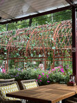 Были 17.05.25 года, было очень жарко, поэтому сидели на улице. Потрясающая веранда - очень много посадочных мест, деревья, зелень,, интересные скульптуры, уютно, стильно, красиво.. Очень много гирлянд, наверное вечером красота обалденная. Еда в принципе понравилась, обслуживали вежливо и быстро. Огромный плюс - детский уголок прямо на веранде. Сначала мне показалось, что это совсем для малышей, но мой семилетний сын нашел чем там заняться. В отзывах пишут про детскую площадку в парке напротив ресторана. Да, она видна с веранды, НО внимание, родители! Следите за детьми. Между рестораном и парком дорога, хоть и узкая и машины по ней проезжают периодически с высокой скоростью. Если будем в Нижнем, посетим это место с удовольствием ещё раз!