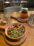 Были в этом ресторане первый раз с мужем, путешествовали по Нижнему. Выбрал муж по отзывам и не прогадал! Очень понравилось! Рекомендую всем! Позвонили в ресторан, забронировали столик, нам предложили веранду с пледом и обогревателями (хотя там было тепло и много гостей, два застолья даже на закрытой веранде). Мы приехали, попросились на 1 этаж, нам сразу же нашли столик. Официант Матвей услышал пожелания мужа, быстро нас обслуживал, не навязчиво, понравилось. Когда он спросил всё ли нам понравилось, муж сказал, что все понравилось, зелень и овощи были очень вкусными, но огурцы не зашли. Официант быстро предложил в качестве комплимента тортик нам с собой. Спасибо большое! Очень приятно. Кухня просто реально вкусная, атмосфера уютная, обслуживание комфортное и внимательное. Спасибо большое шефу, су-шефу, администратору, официанту и всей команде ресторана! Реально молодцы, ребят! Видно, что очень стараются и не зря. Заказывали супы, чай, хинкали, овощи и зелень, подали перчатки, мясо свежее, всё очень вкусное! А еще мы попали с мужем в момент, когда поздравляли в зале с днем рождения за соседним столиком! Это просто шикарно! Не просто песни с бубнами всем коллективом, а рог с вином (спросили у именника перед можно ли ему вроде), очень душевное и красивое поздравление, да такое, что аж весь зал 1 этажа хлопал! Реально от души! Успехов и процветания такому коллективу и ресторану! Порекомендую всем знакомым. В отличие от другого заведения, где мы были за день до этого, это просто классное! Спасибо!