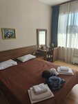Удобно что рядом с морем и жд вокзалом. Приехали в ночь с детьми после полуночи от вокзала быстро дошли. Кондиционер холодильник и телевизор работали. Номер дали большой еще балкончик есть. В других отзывах прочитал что ночью тяжело уснуть музыка до поздна звучит. Но мы не слышали это было в конце августа. Шумоизоляция более менее ещё ковровые дорожки в коридоре, Из-за этого тихо. С 2 мя колясками на лифте добрались ночевали на 3 этаже. Утром наблюдал картину как везде проводили чистку и уборку и номеров и коридора. Пришлось продлить пребывание на часы тк наш вылет задержали. Час 300 руб. Море тоже рядом удобно, пляж понравился в целом с детьми искупались. Через дорогу недалеко есть столовая но пройти нужно через вокзал жд так быстрее ближе и спокойно чтоб не лазит через забор и пути.
