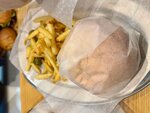 Первого января гуляли по центру в обед, в конце Никольской замёрзли и зашли просто чаю взять. В общем холле направо Фарш, налево другой ресторан. Фарш это такой бургерный фастфуд. Не удержались, попробовали крылья и картошку, смотрели как ребята ловко первого числа жарят котлетки😁 Названия бургеров очень прикольные, мой фаворит «Брянский парень»😆 надо будет его потом на вкус попробовать. Крылья зашли на ура, вкусно, хрустяще, в паре идет кисло сладкий соус, удачное сочетание. В целом нормальное место зайти перекусить, столов много, готовят быстро.