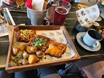 Открылся совсем недавно, прямо напротив жд вокзала. Поэтому сейчас можно прокатиться из любого населённого пункта на электричке до города, чтобы попробовать что-то новое 😉 Итак, начнём. Я взяла: ✅ Картофель фри на богатом 😁 с пармезаном и трюфельным маслом Если честно, особо я не поняла разницу между обычным картофелем фри и этим вариантом. Да, когда приносят, есть аромат пармезана. В остальном - ничего особого я не почувствовала. Соус был ненавязчивый, сливочный, как сказал официант, тоже с трюфелем Моя оценка 3 из 5. ✅ Лимонад со смородиной и фейхоа 5 из 5. Особо хочу отметить, что трубочку приносят отдельно и она упакована в плёнку. ✅ Фирменный бургер 10 из 5. Ооооооочень вкусно 😍 Булочка какая-то воздушная, супер нежная, мягкая. Мясо великолепное. ✅ Американо 5 из 5. Захотелось о нем написать отдельно, потому что, действительно, кофе был вкусным. Без кислинки. ✅ Торт с риккотой и грушей 4 из 5. Это один из двух фирменных десертов. Есть ещё трубочка с варёной сгущёнкой. Торт подойдёт для тех, кто любит не очень сладкие десерты. ‼️ Итак, общее впечатление - я бы вернулась ещё раз, чтобы попробовать мега сырный бургер и ребра. Не понравилось - долгое ожидание. Кофе и торт я ждала, от момента заказа, примерно 15 минут. В целом, вкусно 👌 Рекомендую 💯