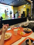 Место хорошее, но заведения «CHALCS», берет за напиток 400₽ за 380мл, но эти мл состоят из льда и одного фрукта (в моем случае долька апельсина), то есть 3-5 глотка и напитка нет, ужасно. Второе заведение «MOMO CHICKEN»: вот они кидают туда орехи на крылья, а если у человека аллергия? Я даже спросила что в набор входит, но никто не сказал об орехах! После этого конечно задыхаться аллергик начнет и заканчиваться плохо, поэтому не могу сказать «спасибо, было вкусно». И если вы там берете набор, вас никто не спросит на выбор там что-то выбрать, они кладут на свое усмотрение (в моем случае корндог не уточнили какой хочу и впихнули с сосиской)