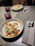 Давно не была в таких ужасных заведениях! Обёртка не соответствует содержанию совсем! Интересный интерьер в стиле лофт привлёк внимание, а дальше начался ужас. Помимо того, что многие блюда приготовить не смогли, так ещё и ожидание составило 1,5 -2 часа. Ребёнку принесли Цезарь, то-ли с курицей протухшей, то-ли это соус такой специфический( как они нам пытались объяснить). В общем, при попытке отказаться от него, нам сказали, что это ваши проблемы, что вам так показалось и убрать из счёта его не смогут😂 Вино с подругой мы ждали час. Роллы мне понравились. Карбонара была переварена! Сервис конечно тоже никакой как вы поняли, приборы тоже всё время забывали принести! Не рекомендую!
