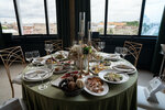 Отмечали новогодний корпоратив. Из положительного: красивый панорамный вид на город, классическая сервировка столов. На этом всё. Интерьер ресторана понравится не всем. Что не понравилось: при входе в ресторан узкий длинный коридор с лестницей на второй этаж, большим количеством дверей, в том числе лифтовых, местом для курения iqos и зоной велкам. Фуршетная еда располагалась рядом (!) со входом в туалет. Вялая работа официантов, на любой вопрос ответы "нет", "нельзя", "не разрешают", "закончилось и больше нет". Спящий (!) официант. Торт и коктейли у официантов приходилось буквально "выпрашивать", так как к некоторым гостям даже не подошли. За наполнением бокалов особо не следили. Гости сидели и ждали, когда же официант всё-таки подойдет и наполнит бокал. На столе оставлять бутылки с алкоголем и морсы/соки не разрешали. Обычные бумажные салфетки на столах отсутствовали. Дорогое , не интересное меню. Еды было мало, хотя по граммовке на человека должно было быть достаточно. Еду комментировать не буду - у всех свой вкус. По середине танцпола выход на лестницу на первый этаж. Очень мешало и танцующим и тем, кто пользовался лестницей. Для мероприятий с пожилыми людьми лучше не использовать - травмоопасно: туалет на первом этаже ресторана, а на винтовой лестнице крутые ступеньки. Также лучше не использовать для мероприятий с количеством человек 30+ из-за непонятной зоны велкам - очень тесно. Рестораном, особенно обслуживанием, разочарована. Не порекомендую.