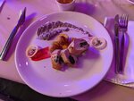 Арганомика ресторана неудобная, очень мало место, на против танцпола - лестница, постоянно сталкиваются танцующие и выходящие. Кухня впечатления не произвела