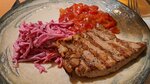 Сочный свиной окорок, маринованный и приготовленный на огне, с лёгким ароматом дыма. Подаётся с красным луком и лавашом, дополняется шашлычным соусом