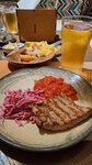 Неплохое местечко в центре Петербурга. Нам повезло и в выходной день мы ждали столик всего 7 минут, хотя другим посетителям повезло меньше. Порадовала не громкая музыка - можно разговаривать, не повышая голос. Расслабленный интерьер комфортен для воскресного ужина. Запеканка с минтаем порадовала большим количеством сыра (но не минтая 😂), большая закрытая пицца с курицей и грибами оказалась сытной, а вот хинкали разочаровали ощутимой кислинкой и хрящами. Вкусный эрл грей с васильками приятно завершил трапезу. Специально приезжать в этот ресторан я бы не стала, но зайти по пути гуляя в центре города можно.
