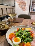 Приятное место. Уютная атмосфера, интересное меню, большая винная карта. Есть витрина с хлебом, выпечкой, десертами, можно отдельно с собой купить. Мне все понравилось.