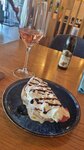Очень вкусная паста тальятелле с креветками и песто, розовое безалкогольное вино и брускетта с томатами и страчателлой-невероятная вкуснятина, свежайший хлеб, пальчики оближешь)