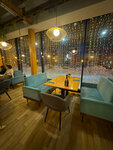 Еда вкусная ,официанты умнички.Коктейли не понравились ( как-то и подача неочень и на вкус тоже ).Что касается атмосферы : когда зима и ты сидишь у окна на диванчиках ,а на окошке гирлянда мерцает-кайф ,но просто придти в выходные и без брони умудриться ухватить место у окна -оказалось из разряда фантастики ,поэтому пришлось сесть за столик в центре ,за которым выделили ( озвучили) полтора часа .Поэтому сразу заказать,вкусно покушать и уйти-всё,что удалось при посещении без брони. На вкус и цвет ,но летом столики на улице никак не ограждены ( вокруг гуляют с собаками ) ,сами окна внутри никак летом не украшены и неособо чистые снаружи,поэтому за атмосферой видимо не сюда ,а вот за вкусно приготовленной едой и вежливым персоналом -да.