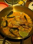 Для приготовления паэльи мы используем испанский рис бомба. Готовим с шафрановым бульоном, белым вином, софрито (мелкий кубик) из болгарского перца и лука-шалота с добавлением соуса из свежих томатов, соуса биск и тайгер милк (лемонграсс, перец чили