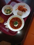 Заказали борщ чай и булочки: борщ мяса целая глубокая тарелка! "супа по объёму 500 мл где то, очень вкусно! Булки большие вкусные. Спасибо! Лучше чем в этой кафешке, не видели. Оцениваем еду и чистоту.