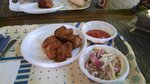 Нежное сочное мясо шашлыка, мы брали из свинины, салаты, напитки, соусы и прочее, все достойно внимания и вашего животика) Единственное, что омрачает слегка - отдаленность от города, но если есть авто - это не проблема. Возможно взять еду с собой. Кафе работает не первый год, и заработало, по праву, хорошую славу. Рекомендую!