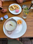 антураж и дизайн места приятный. меню простое, но еда была вкусная. сняла две звезды за громкую тусовку сотрудников кафе около барной стойки (как будто можно поболтать и в более уединенном месте не перед гостями?) и за отсутствие возможности оплатить по QR-коду. про последнее вообще не поняла как так. я забыла дома карту и могла оплатить только по QR. судя по банковскому терминалу можно было бы так сделать (может быть я ошибаюсь). официантка сказала «у нас такого нет». оплату за заказ сделала переводом (больше вариантов не было, как и наличных у меня в кармане). осталась в растерянности от того, что в таком приятном заведении избегают налогов (?) 🤷🏼‍♀️