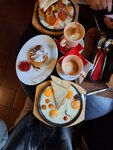 Завтракал два раза , 25 и 26 мая 2025г. В целом неплохая кухня, интерьер и персонал. Порции большие. Но при этом хочу отметить ряд досадных замечаний: 1. В первый день омлет был пересолен. 2. Во второй день омлет принесли чуть теплым, а приготовление овсяной каши заняло 30 (тридцать!) минут , и при этом в кашу забыли положить заявленные в меню ягоды.